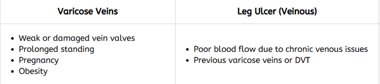 Varicose veins and leg ulcers are two common conditions affecting the lower limbs — and while different in nature, they are often connected. Both are related to poor circulation in the veins and can lead to discomfort, complications, and long-term issues if not properly treated.